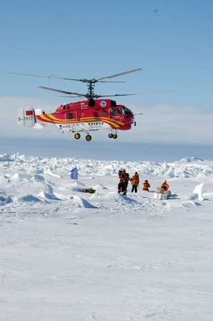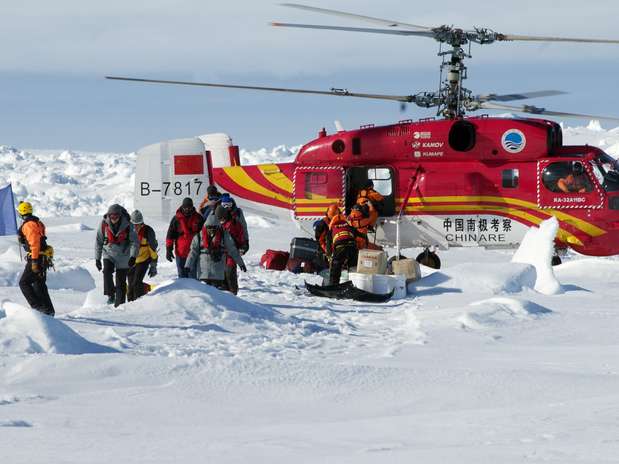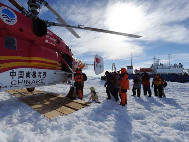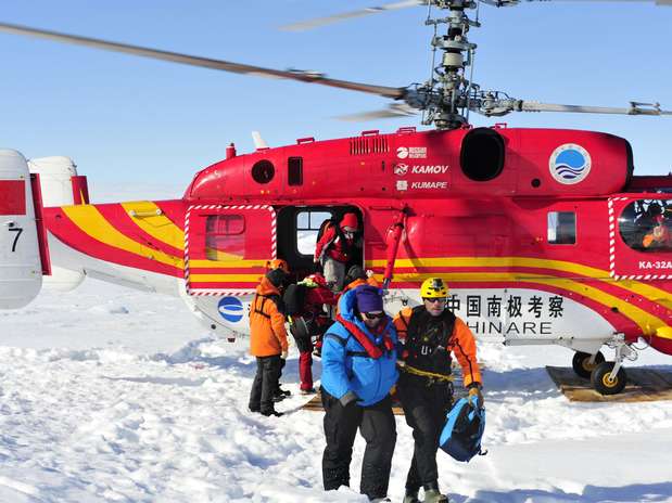 Na quinta-feira à noite, um helicóptero do Dragão da Neve transportou em pequenos grupos 52 cientistas e turistas do navio russo Akademik Shokalskiy para o navio australiano.
